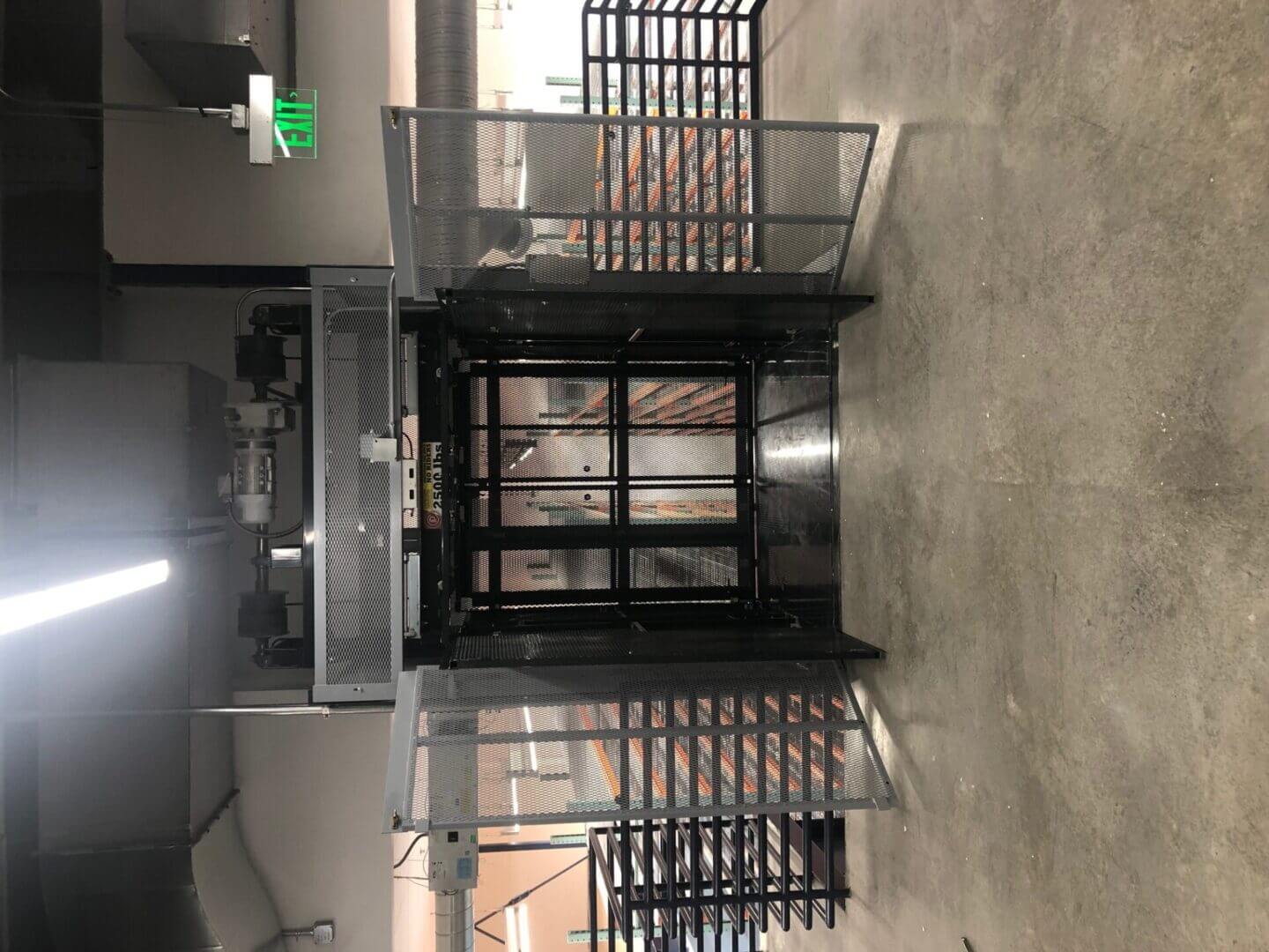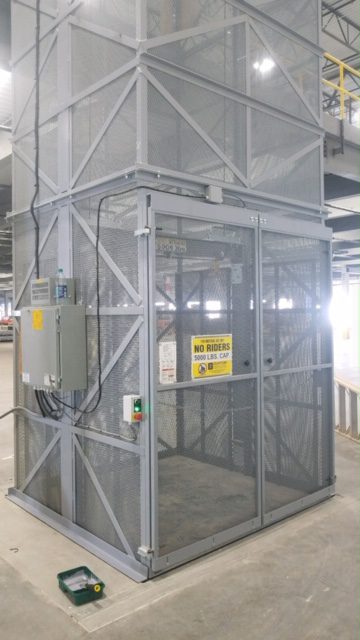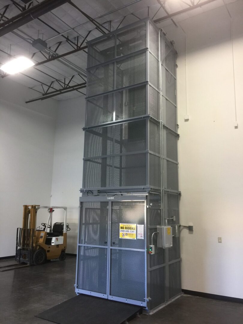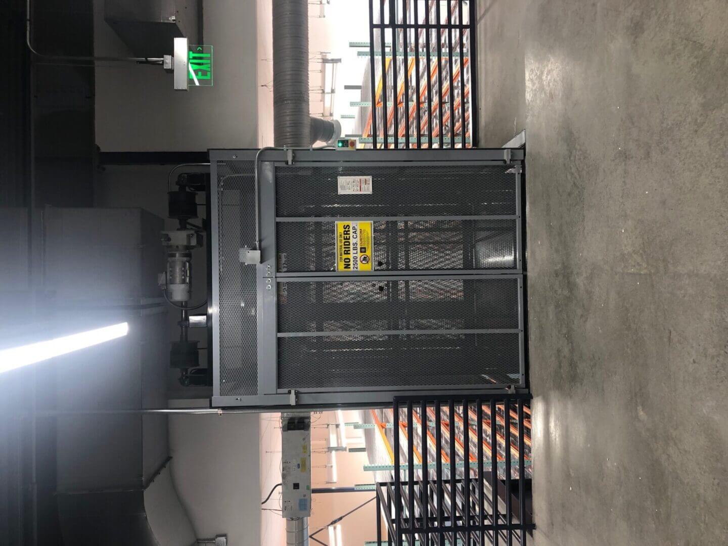 metal mesh freight elevator in warehouse