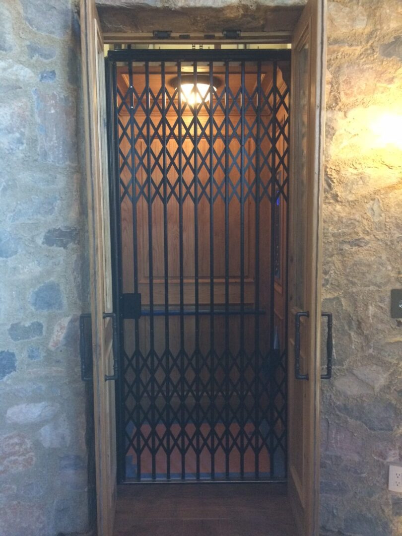 Stone-walled vintage elevator with folding gate