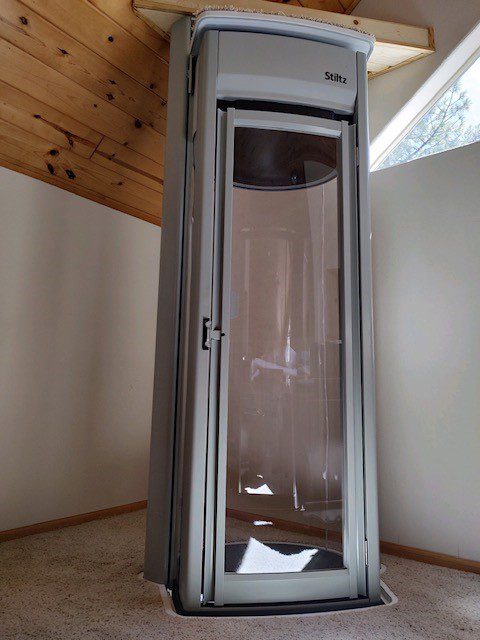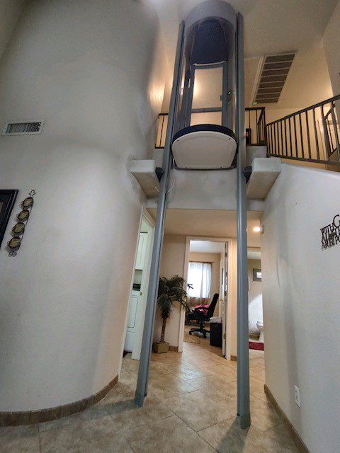 Residential pneumatic vacuum elevator in foyer