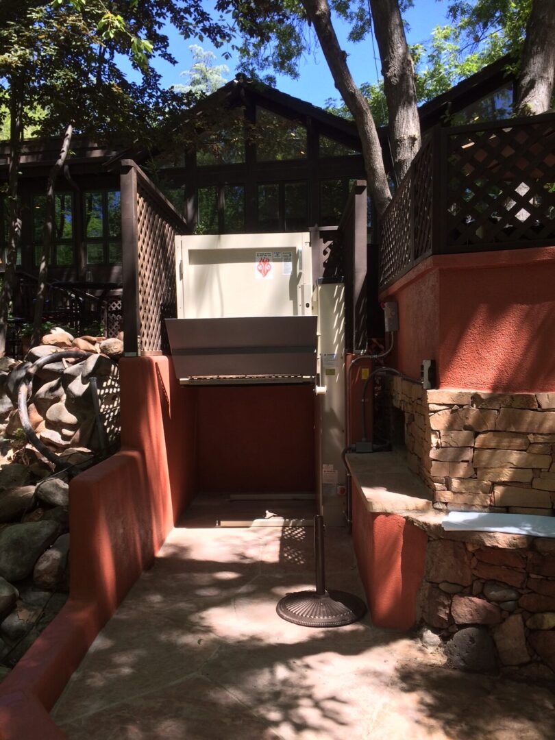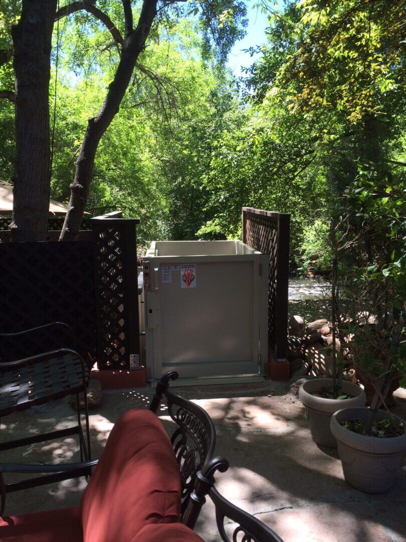 Shaded patio with outdoor wheelchair lift