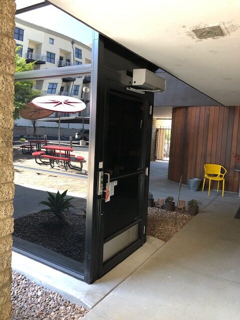 Indoor platform wheelchair lift with glass door