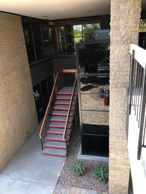 Courtyard stairwell with red-edged steps